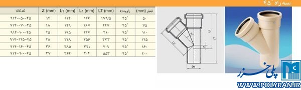سه راه 45 درجه 125 میلیمتر پوش فیت سایلنت (پلی ران)