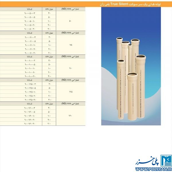 لوله یک سر سوکت 200 میلیمتر 300 سانتیمتر پوش فیت سایلنت (پلی ران)