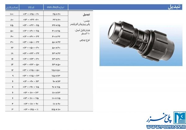 تبدیل پلی اتیلن 40 × 50 میلیمتر (پلی ران)