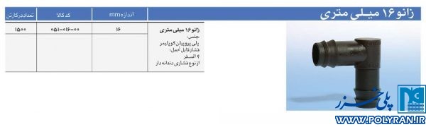 زانو 16 میلیمتر (پلی ران)